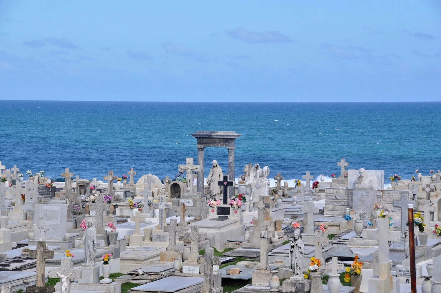 Illustrious residents rest for eternity, as if one with the sea. Old San Juan, Puerto Rico
